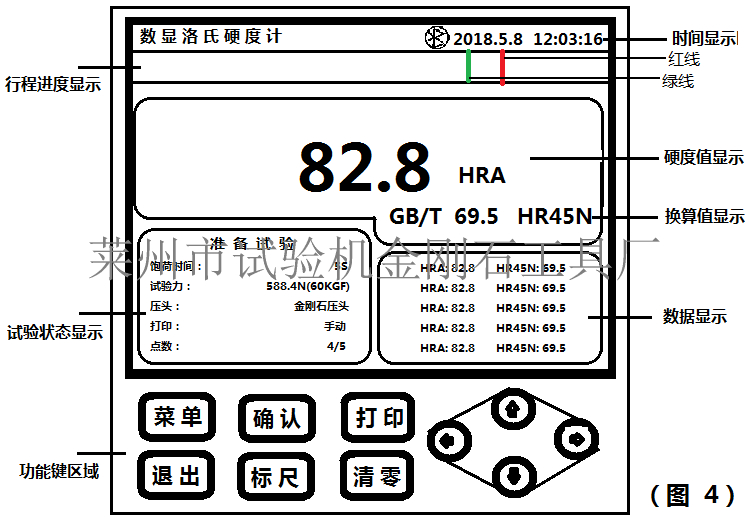 C. 清零鍵: 清零鍵是對卸載初試驗力后殘余的微量試驗力解決歸零的功能鍵。